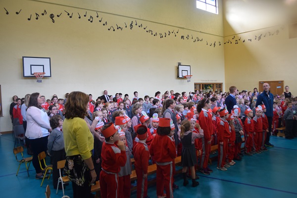 D’iarr sé ar gach duine ansin bheith deas agus cneasta le gach duine sa rang agus ar scoil agus gan éinne a fhágaint amach. Mhol sé dóibh chomh maith bheith ag faire amach do chairde a bhi brónach.Ag an deireadh chan na daltaí ar fad ” An Seanduine” agus “Amhrán na bhFiann” dó.