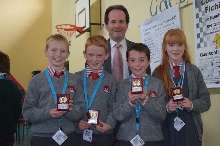 The inaugural Munster Chess Championship for Gaelscoileanna was held in Gaelscoil Uí Riada on Thursday 14th May, under the direction of Úna Ní Bhaoill of " Gaelscoileanna". Gaelscoileanna“.