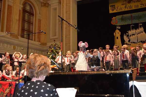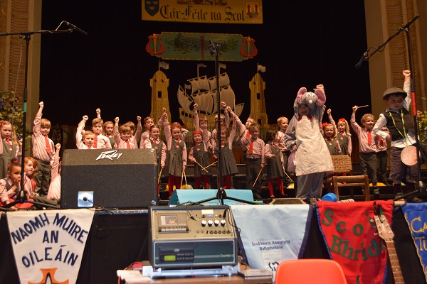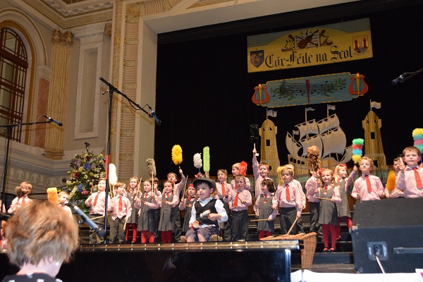Ghlac ranganna na Naíonáin Beag páirt i gCór Fhéile na Scol le déanaí. Buíochas leis na múinteoirí agus na tuismitheoirí a tháinig go Halla na Cathrach chun tacaíocht a thabhairt dóibh.