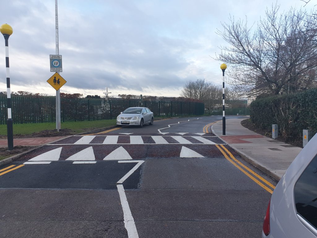 Is rogha breise é do chlannta páistí a thabhairt trasna an bhóthair anseo ar maidin fad is atá an carr paráilte in aice leis an S.MA.